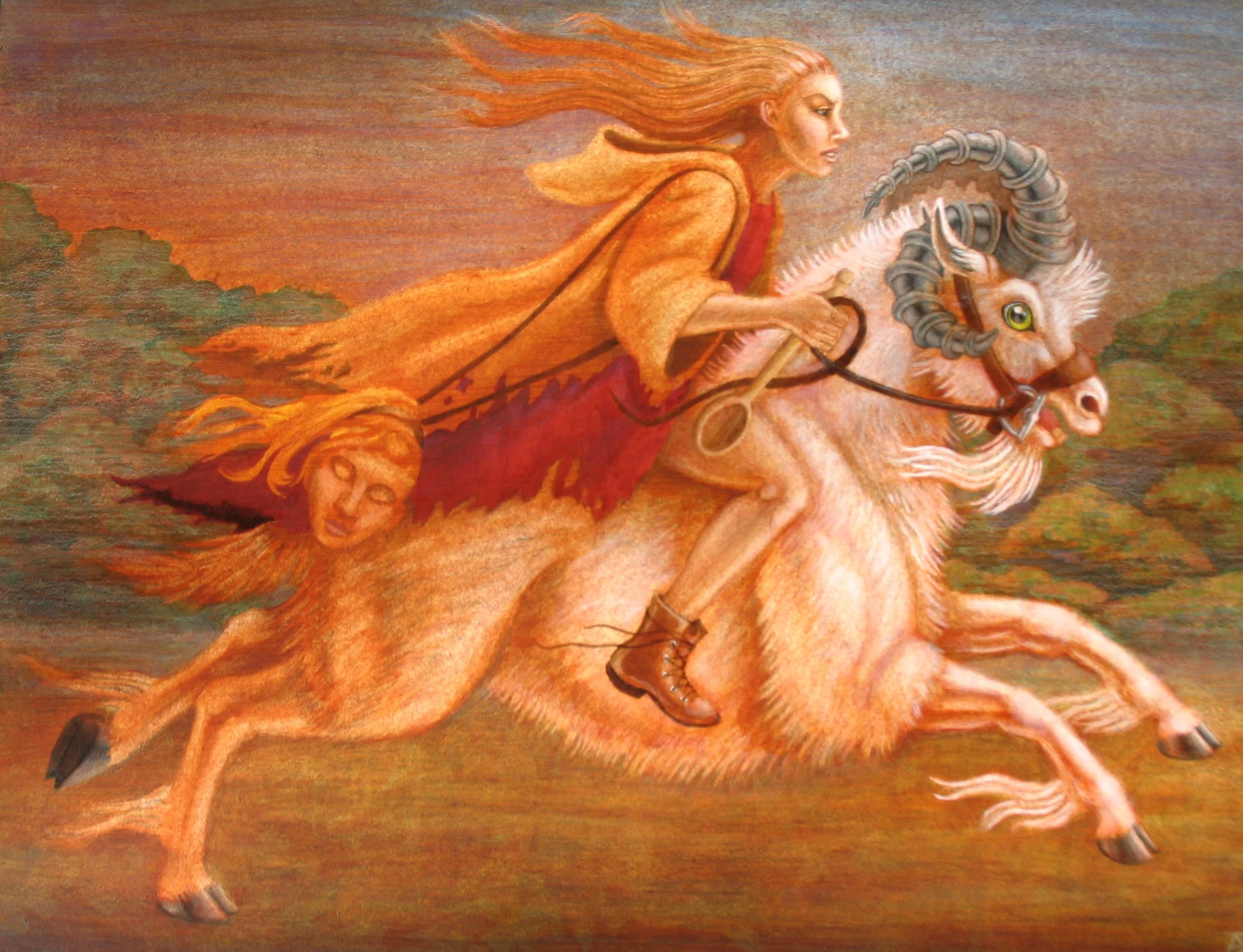 "...The goat snorted and butted them with his horns and Tatterhood smacked the trolls with her magic wooden spoon until they gave up and let her escape."