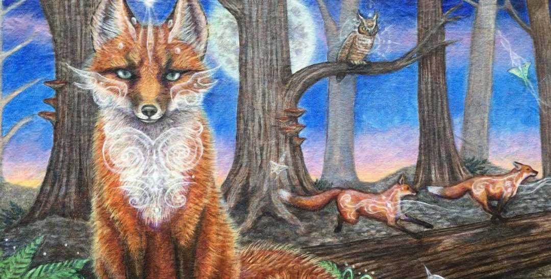 A Fox’s Tale (detail, 2023) – acrylic on canvas on masonite